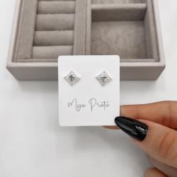 Brinco zircônia losango com cravejado 11mm | Mya Prata