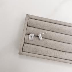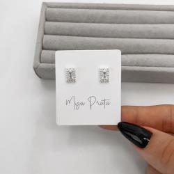 Brinco zircônia retangular com cravejado 8mm | Mya Prata