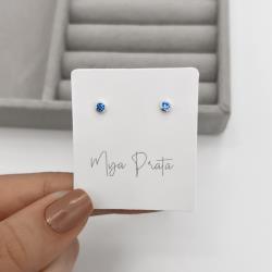 Brinco zircônia redonda embutida azul 3mm | Mya Prata