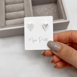 Brinco coração madrepérola com cravejado 11mm | Mya Prata