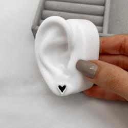 Brinco coração pedra ônix com cravejado 11mm