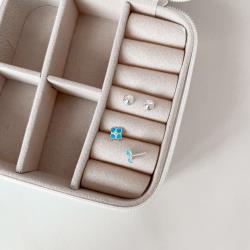 Brinco infantil flor resina azul 7mm tarraxa baby | Mya Prata