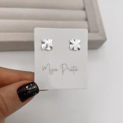 Brinco quadrado ondulado riscado 8mm | Mya Prata