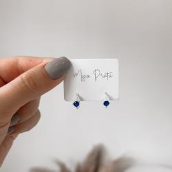 Argola click cravejada 11mm detalhe zircônia redonda azul | Mya Prata