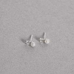 Brinco zircônia e pérola 9mm | Mya Prata