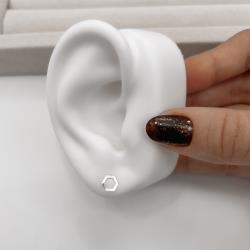Brinco hexágono vazado 6mm | Mya Prata