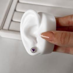 Brinco zircônia redonda ametista com cravejado 9mm
