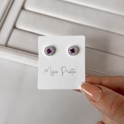 Brinco zircônia redonda ametista com cravejado 9mm | Mya Prata