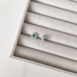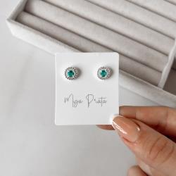 Brinco zircônia redonda acqua com cravejado 9mm | Mya Prata