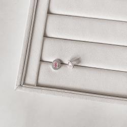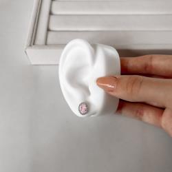 Brinco zircônia oval rosa com cravejado 11mm | Mya Prata