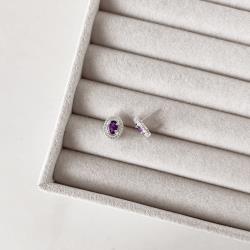 Brinco zircônia oval ametista com cravejado 11mm | Mya Prata