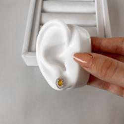 Brinco zircônia oval amarela com cravejado 11mm | Mya Prata