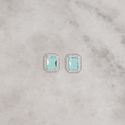 Brinco zircônia retangular azul claro com cravejado 13mm | Mya Prata