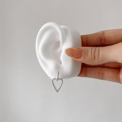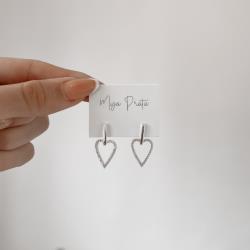 Brinco base com pingente coração vazado cravejado 17mm | Mya Prata