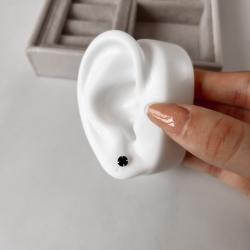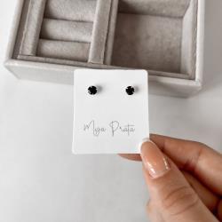 Brinco zircônia redonda ônix 5mm | Mya Prata