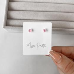Brinco zircônia quadrada rosa 4mm | Mya Prata