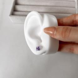 Brinco zircônia quadrada lilás 6mm | Mya Prata