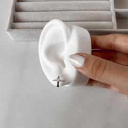 Brinco fio liso e cravejado 12mm | Mya Prata