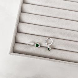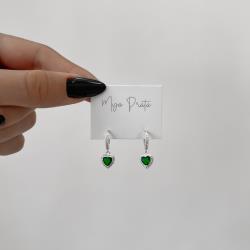 Argola click cravejada 11mm pingente zircônia coração esmeralda | Mya Prata