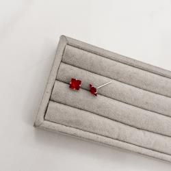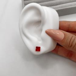 Brinco zircônia quadrada vermelho 6mm | Mya Prata