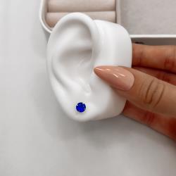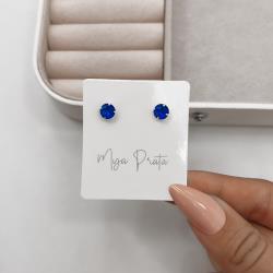 Brinco zircônia redonda azul bic 6mm | Mya Prata