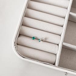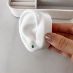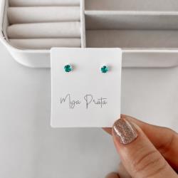 Brinco zircônia redonda turquesa leitoso 4mm | Mya Prata