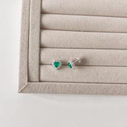 Brinco zircônia coração verde fusion com cravejado 9mm