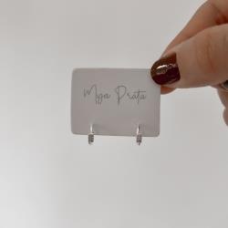 Brinco meia argola detalhe retângulo cravejado 11mm tarraxa | Mya Prata