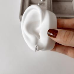 Brinco meia argola detalhe retângulo cravejado 11mm tarraxa