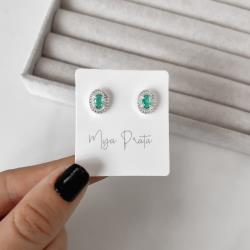 Brinco zircônia oval acqua com cravejado 11mm | Mya Prata
