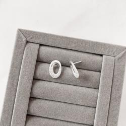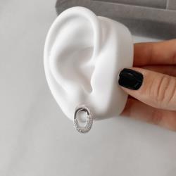 Brinco elo oval metade cravejado 17mm | Mya Prata