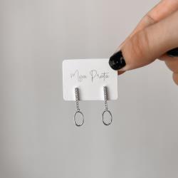 Brinco palito cravejado 17mm com pingente elo oval | Mya Prata
