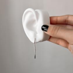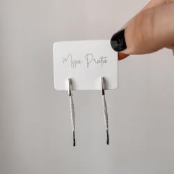Brinco base 11mm com pingente bastão cravejado 34mm | Mya Prata