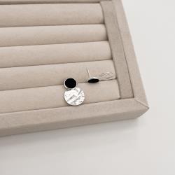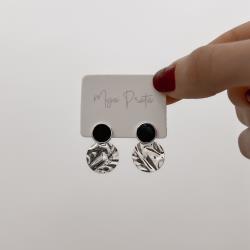Brinco base círculo ônix resina com pingente círculo ondulado 15mm | Mya Prata