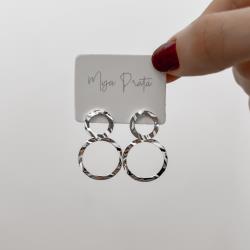Brinco base círculo vazado ondulado com pingente 32mm | Mya Prata