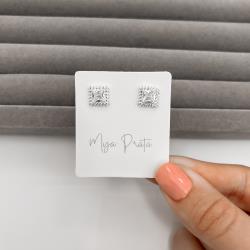 Brinco zircônia quadrada com cravejado 9mm | Mya Prata