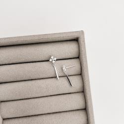 Brinco trevo cravejado 6mm pingente palito 14mm | Mya Prata
