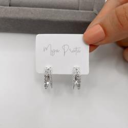 Argola oval 2 fios com zircônias 18mm tarraxa | Mya Prata
