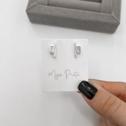 Brinco zircônia retangular com palito cravejado 13mm | Mya Prata