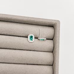 Brinco zircônia retangular acqua detalhe torcido 10mm | Mya Prata