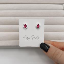 Brinco zircônia oval cereja detalhe torcido 10mm
