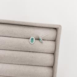 Brinco zircônia oval acqua detalhe torcido 10mm | Mya Prata