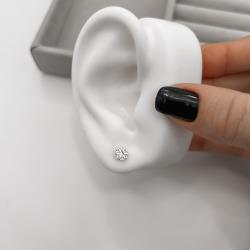 Brinco medalha flor com zircônias 6mm | Mya Prata
