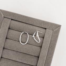 Brinco oval vazado com pingente cravejado 22mm | Mya Prata