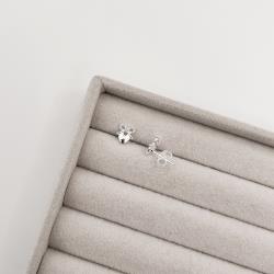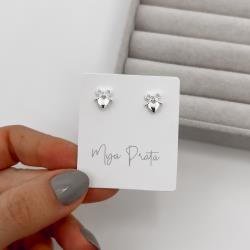 Brinco laço com zircônia e coração 8mm | Mya Prata