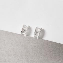 Brinco meia argola cravejada 12mm tarraxa | Mya Prata