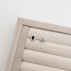 Brinco zircônia oval ônix com cravejado 10mm | Mya Prata