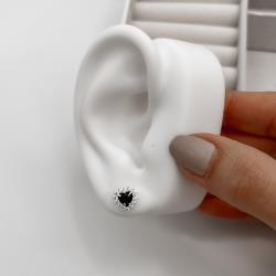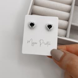 Brinco zircônia coração ônix com cravejado 9mm | Mya Prata