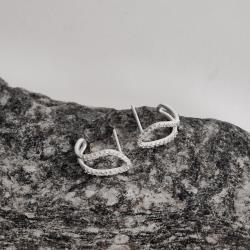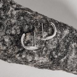 Brinco meia argola assimétrica vazada cravejada 13mm tarraxa | Mya Prata