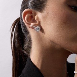 Brinco zircônia coração com duplo cravejado 15mm | Mya Prata